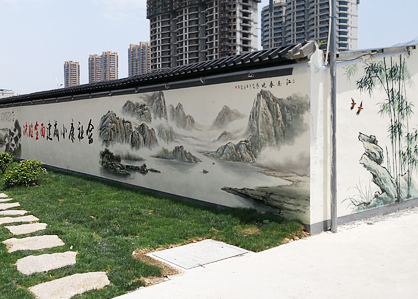 溫州市墨客墻繪藝術(shù)有限公司主要從事有個性有創(chuàng)意的家居裝飾墻繪、幼兒園卡通彩繪、KTV酒吧主題墻繪、3D立體墻繪、習(xí)哥彭姐文化大革命的城鄉(xiāng)文化宣傳墻繪等,當(dāng)然還有我們獨歩武林的高墻墻繪藝術(shù)!畫高墻有時一個頭像就有兩米,不僅僅是大了型不好把握,一般習(xí)慣在陸地作戰(zhàn)的繪畫者往往上去后會讓你唱起一首歌:“三月里的小雨,淅瀝瀝瀝......瀝瀝……淅瀝瀝瀝下個不停……”就是戴上尿不濕,他們也會在上面演示帕金森。我們施工時下面觀看的人如少女初戀般心跳,欣賞的人似紂王品酒觀妲己跳舞一樣陶醉。連村中惡犬也為我們搖尾吶喊:“……墨客墻繪……神勇無畏!
